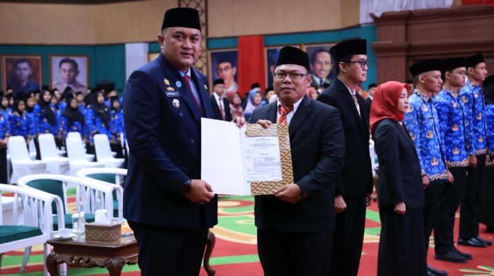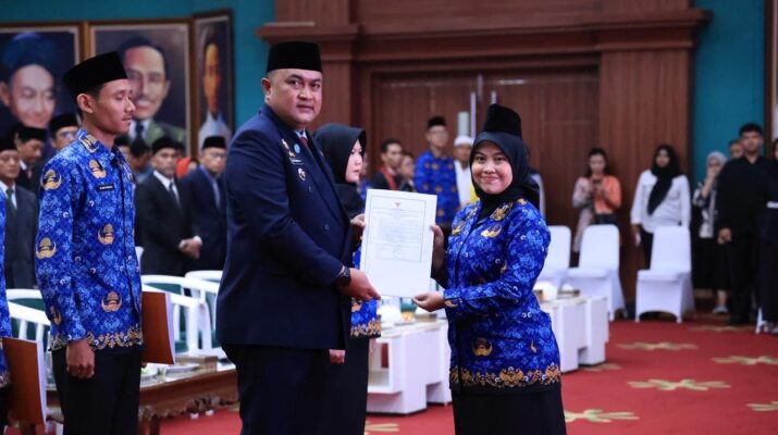 CIBINONG-Bupati Bogor, Rudy Susmanto melantik serta menyerahkan Surat Keputusan pengangkatan Pegawai Pemerintah dengan Perjanjian Kerja (PPPK) penuh waktu tahap II lingkup Pemerintah Kabupaten (Pemkab)