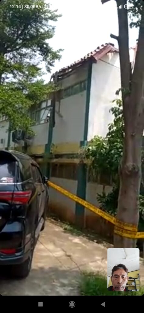 Sementara gedung di pasang polis line oleh Polsek Cileungsi. ( Tim/Red/ Lambok.)