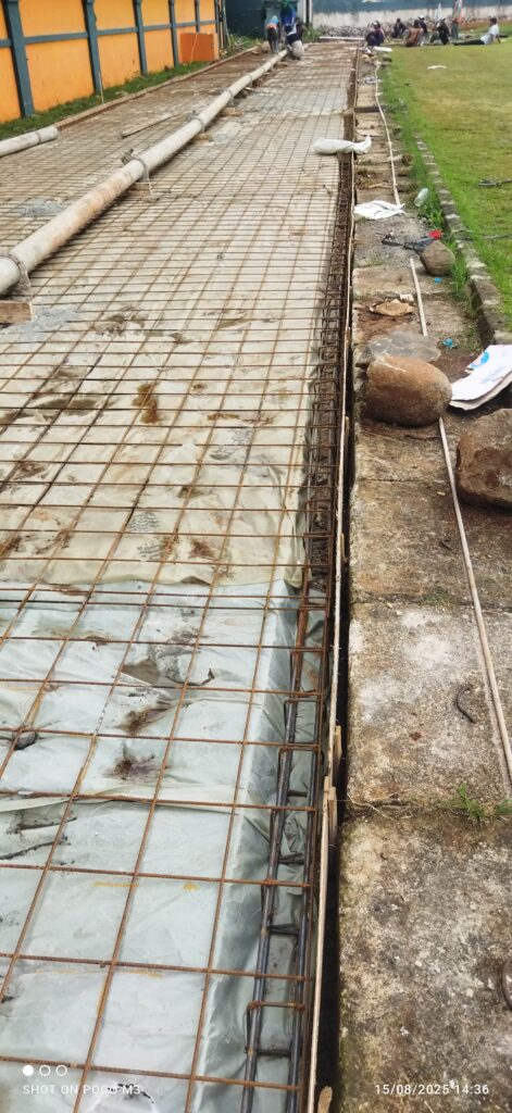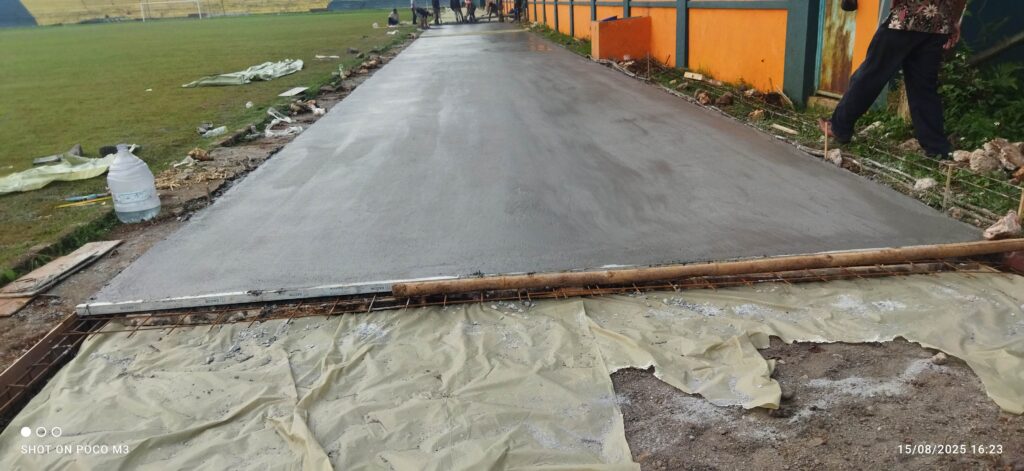 Ditempat yang berbeda namun masih sekitar Stadion , Media Ini juga konfirmasi kepada Mandor Pelaksana , PT MANGGUSSU WARU NUSANTARA , . Biru mandor pelaksana proyek membenarkan bahwa lantai kerjanya tidak ada , hanya pakai pasir saja , makanya kita buat Penyangga berupa Coran atau bantalan sehingga posisi Wermes itu ada di tengah , artinya dari Tebal 8 Cm maka posisi Wermes ada di tengah , terang Biru.