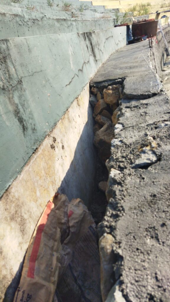 Kemudian , Tim media ini juga memperhatikan di pasangan struktur yaitu Tiang Salasar , terlihat kolom praktis yang menahan Salasar tidak di langsungkan ke pasangan Kolom Ring balok , demikian juga di bawah tidak di cor secara bersamaan namun di kerjakan secara Stek . sehingga hal ini sangat meragukan kekuatan Salasar yang nantinya akan memiliki Beban berat karena menahan berat masyarakat yang menonton bola.