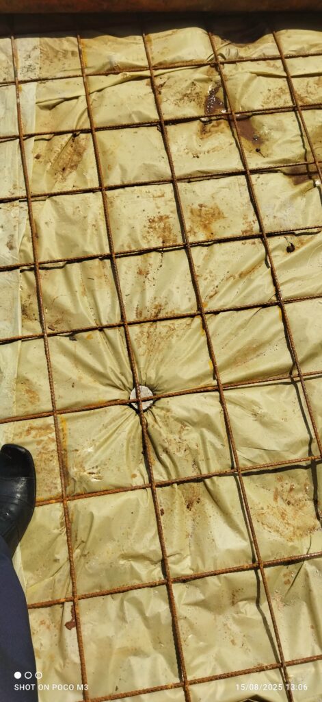 Akibatnya , Tim media ini juga menemukan , akibat dari tertanamnya Bantalan tersebut maka kondisi Wermes yang seharusnya ada di tengah-tengah Pasangan Coran Justru ada yang langsung menempel ke lantai kerja , dan di kala Pekerja mengangkat Wermes saat pengecoran itu , justru posisi Wermes hampiri mendekati Batas akhir Pasangan.