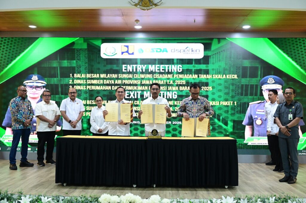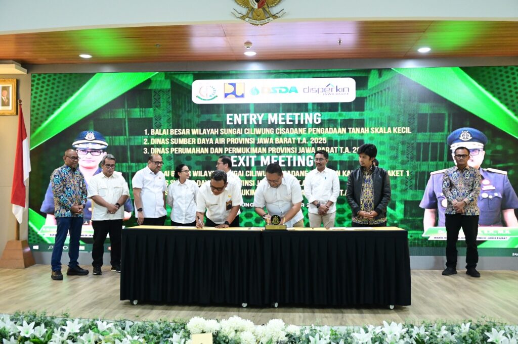 Bertempat di Aula R.Soeprapto Lantai 8 Kejati Jabar, Kajati Jabar Katarina Endang Sarwestri, S.H., M.H.didampingi oleh Asisten Intelijen Dr. Agustinus Herimulyanto, S.H., M.H.Li. beserta jajaran melaksanakan kegiatan Entry Meeting dan Exit Meeting serta Penandatanganan Pakta Integritas dalam Pelaksanaan PPS Kejati Jabar pada Balai Besar Wilayah Sungai Ciliwung Cisadane, Dinas Sumber Daya Air Provinsi Jawa Barat dan Dinas Perumahan dan Permukiman Provinsi Jawa Barat Tahun Anggaran 2024-2025 (24/09/25).