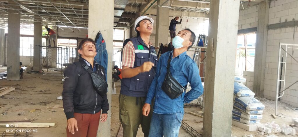 Sesuai dengan pantauan media SIM.Com terlihat bangunan struktur Utama dari gedung tersebut sudah berdiri dari yang sebelumnya adalah pekerjaan pemasangan Tiang struktur dan saat ini dalam pekerjaan pemasangan Dinding , Intalasi listrik, instalasi AC, Instalasi Air bersih dan Air kotor serta pemasangan Rangka plafon dan juga pembuatan Drainase dan lantai dua sedang di lakukan pengambilan titik koordinat pemasangan keramik oleh ahlinya.