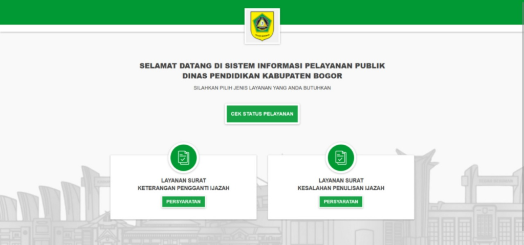 1. Dalam upaya meningkatkan kualitas pelayanan publik, Dinas Pendidikan Kabupaten Bogor terus berinovasi dengan memanfaatkan teknologi informasi. Salah satu wujud konkret dari inovasi tersebut adalah peluncuran PEPES Online (Pelayanan Publik Perbaikan Ijazah Siswa Online). Layanan ini dikembangkan untuk memberikan kemudahan bagi masyarakat, khususnya peserta didik, orang tua, dan satuan pendidikan, dalam mengakses informasi tentang layanan perbaikan ijazah rusak, atau terdapat kesalahan penulisan data tanpa harus datang langsung ke kantor dinas.