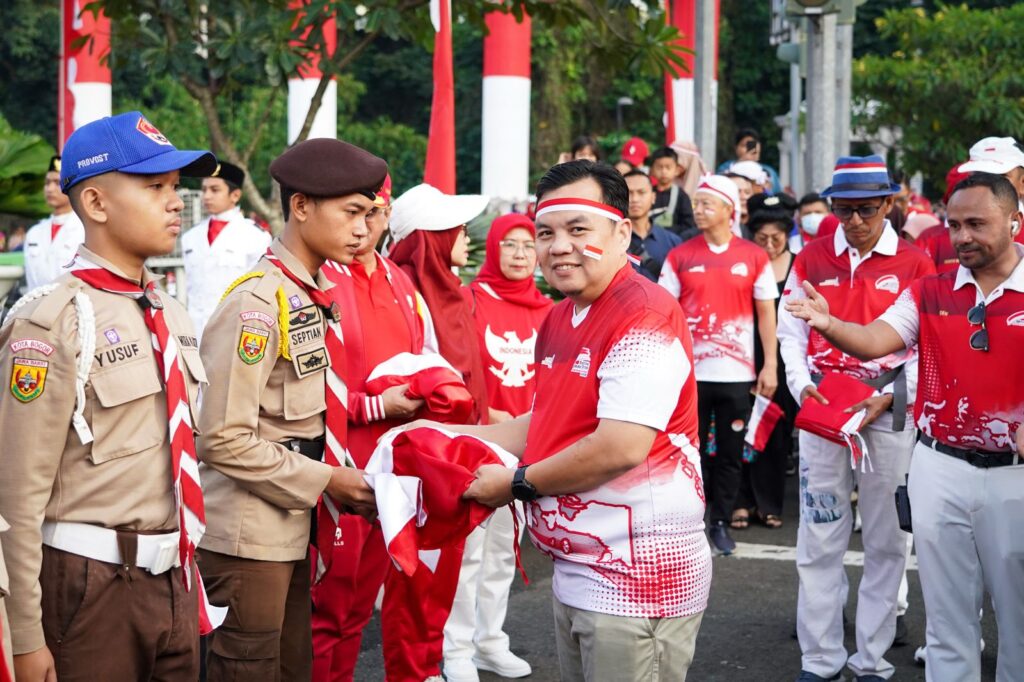 HUMPROPUB – Ketua DPRD Kota Bogor, Dr. Adityawarman Adil, mengikuti kegiatan kirab bendera raksasa di Festival Merah Putih dalam rangka merayakan Hari Kemerdekaan Republik Indonesia, Minggu (10/8/2025).