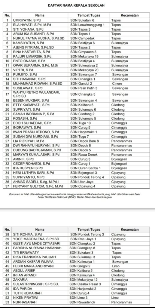 Wali Kota Depok Rotasi Sejumlah Kepala Sekolah Tingkat SDN dan SMPN, Ini Nama-Namanya: